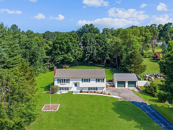 Wonderful opportunity in desirable neighborhood/subdivision just minutes from exit 14. Well maintained and nicely appointed home with 2000 sqft of finished living space. Recent improvements include remodeled hall bathroom (new flooring, tub/tiled shower and vanity), several light fixtures, new flooring in foyer, new front walkway, and landscaping. Sunny living room with bay/bow window (views), hardwood flooring, and brick masonry fireplace (set up with gas logs). Dining room with garden window and wood floors. The eat in kitchen opens to large screened porch (new carpeting). The lower level is fully finished with full bathroom/laundry area, and is a walk out...offering two large living spaces (a den and family room)...great in-law potential. Two car detached garage (exterior just painted). Terrific exterior spaces...perfect for entertaining...featuring a private deck off the screened porch. The rear yard is expansive, level and partially fenced. Watch the Southbury fire works from home. Year round tree top views from front yard! Vinyl siding. Wired for generator. Boiler and roof are approx 7 years old. Well pump/wires and UV light-2016. Close proximity to shopping, restaurants, parks and highway. Not one to miss!