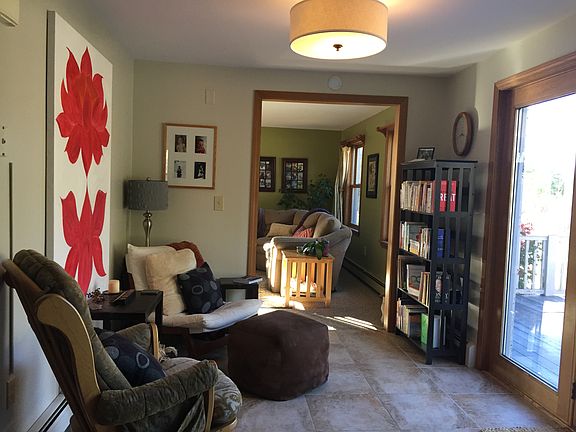 34 Deer Run Lane Waitsfield, VT Spacious home with open floor plan, beautiful views, lots of big windows, flat back yard great for sports, a fire pit, or simply stargazing. New tile floor in kitchen, wonderful wooden island with storage, new stainless steel appliances: commercial style refrigerator and freezer set, double oven and 36" 5-burner gas cooktop. Breakfast nook off of kitchen with glass doors onto large deck with fenced in backyard, and covered porch on front. Standing seam metal roof on house, garage and shed. Spacious living room with 1/2 bath on first floor. Large masterbedroom with view of the mountains, walk in closet and private bathroom. Second upstairs bathroom has jacuzzi style whirlpool tub. Partially finished basement with finished tv/guest room and exercise room, in house access and bulkhead. Extended 2 car garage with storage above and side sheltered area. Quiet neighborhood 1.5 miles to Waitsfield Village with great local stores, restaurants and all the ammenities of a big community in a small town. Wonderful schools. Close to Montpelier, Stowe, Waterbury and Burlington. XC ski, snow shoe trails, biking and hiking trails minutes away.
