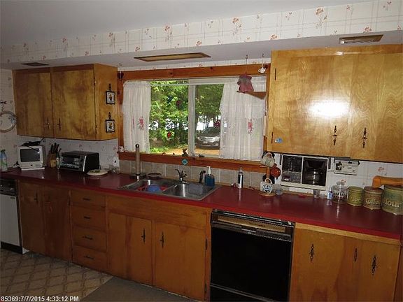 Beautiful sunsets from this lovely year round home with 123+/- feet of shore frontage. Some original features by artist Klir Beck. Eat-in kitchen w/bar, formal DR with water views and large back deck. 2 car attached garage and separate shed/boathouse. Brick hearth w/woodstove in LR. So much to offer! Priced to sell!
