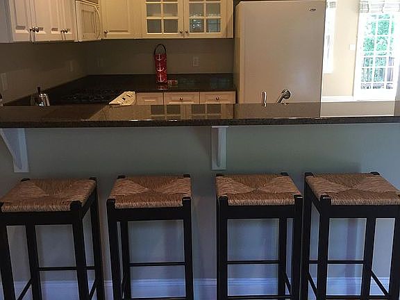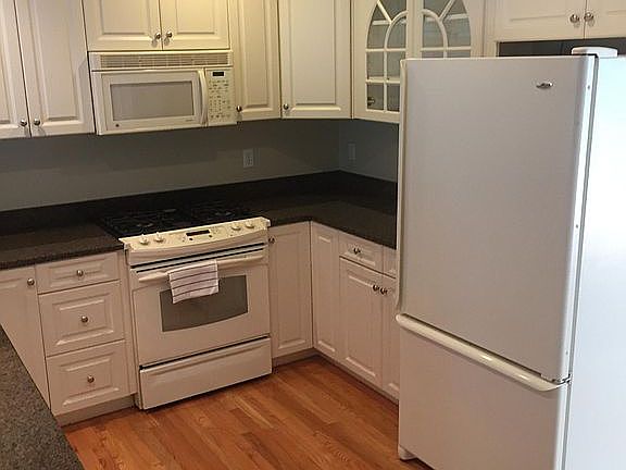 Beautiful 3 bedroom 2.5 bath end unit in the heart of Falmouth Village. Walk to restaurants, shops, the bike path and commuter bus station. Spacious interior features kitchen/dining area with granite and newly refinished hardwood floors. Just off the kitchen is a half bathroom and stack-able washer/dyer for convenience. Large living room with fireplace and slider door to deck. The first floor master bedroom has a private bath. The second floor has two bedrooms and a full bathroom. Large basement for storage. Landscaping and Snow Removal Included in Rental Fee. Full unfinished basement for storage. Pets considered. Tenant responsible for utilities