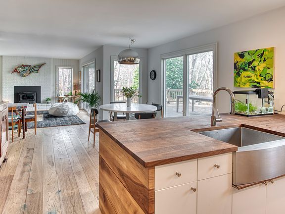 Rental Registration #: Enjoy this artfully renovated home at 34 Devon Landing Drive with easy access to bay beaches. This 3 bedroom, 2.5 bathroom home has been fully renovated. Located ideally on a quiet cul-de-sac one block to Devon Bay in Amagansett and just minutes from town. Multiple living spaces, allow everyone to coexist peacefully with room to live & work. Enter the home through a bright den. A home office is just off the den. The bright and renovated kitchen with all Miele appliances looks over the dining and main living room. Through the hall is a powder room and a washer/dryer. This leads to a bright and spacious rec room. The main living room opens to a large deck. The second level has 3 bedrooms and 2 bathrooms all with built in closets.The primary and en suite are calm and serene. This home is perfect for an enjoyable summer. RR# 22-1052