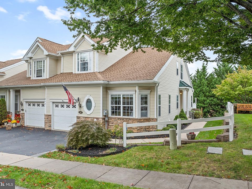 The end-unit townhome you’ve been waiting for! Bright, spacious, and thoughtfully designed, this beautiful home sits in the highly desirable Creekside Village 55+ community. Step inside to a welcoming tiled foyer with tile flooring and a coat closet while offering plenty of space. The main living area is filled with natural light (one of the best perks of an end unit) and features high ceilings, an open banister to the second floor, hardwood floors, and a cozy gas fireplace with updated tilework. The dining area flows seamlessly into the kitchen, creating the perfect layout for everyday living and entertaining. The 1-year-young custom kitchen is a gorgeous with Quartz countertops, a large island with power, custom shelving, ample cabinet space, pantry, upgraded lighting, and a newer sliding glass door that leads to a spacious, extended deck overlooking mature trees and private views. The main-floor primary suite features vaulted ceilings, large windows bringing in more natural light, two closets (including a huge walk-in), and a beautifully updated bathroom with a custom tile shower, tile flooring, glass doors, double sink vanity with marble countertops, and updated fixtures. An updated powder room, main floor laundry, and garage access complete this level. Upstairs offers even more space with a large bedroom with a massive walk in closet, full bath, a double door closet, open loft area, and yet another generous walk-in closet that’s perfect for storage or even an office or craft room. The full, walkout basement provides endless possibilities for storage or future finishing. Major updates bring peace of mind: roof, gutters, and downspouts (Oct. 2024), HVAC & ductwork (2022), water heater (2021), and updated side panels at the entry door (Oct. 2025), Kitchen (Jan. 2025). Living in Creekside Village means resort-style amenities right at your fingertips including a pool, clubhouse, fitness center, billiards room, library, meeting space, and a calendar full of activities. Come check out this home and the community before it is too late!