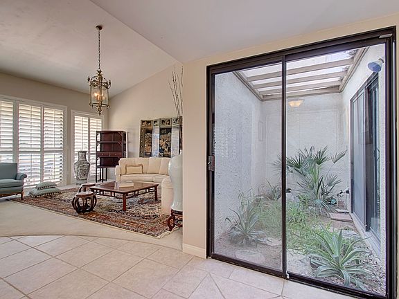 Come enjoy the Rancho Las Palmas lifestyle. This is an updated two bedroom plus den home. The kitchen has stainless appliances, a gas range, cherry cabinets and granite counter tops, is well supplied for the chef and it has been opened up to the dining area. It is furnished with a King bed in Master, Queen in Guest, sleeper sofa in den. Three televisions and a DVD. Both baths have also been upgraded with cherry cabinets, new sinks, mirrors and faucets. You will enjoy your morning coffee on the east facing patio with golf course and mountain views, an electric awning, fan for added comfort and tiled floor. Two pools are nearby. Westfield Shopping Mall and El Paseo are just down the street. Residents have also been spotted walking to the Street Fair at College of the Desert. Rancho Las Palmas offers golf packages plus 7 other popular courses are located within a 10 minute drive. Super central location. Don't miss out on this beautiful home! Brokered And Advertised By: Windermere Real Estate Listing Agent: Susan London