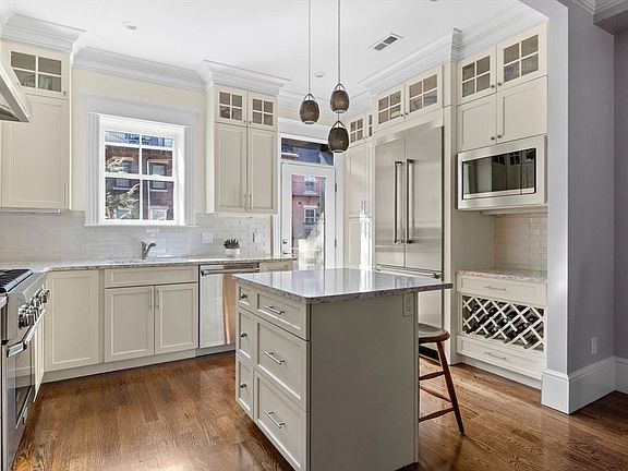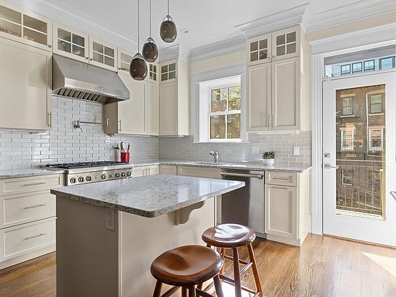 Located in South End’s desirable Eight Streets neighborhood, nearby Ringgold and Peter’s Parks, a penthouse triplex with southwestern exposure sunlight. Open layout kitchen dining and living level with walkout deck, fireplace and half bath. The kitchen is finished with custom cabinetry, quartz countertops, and top-of-the-line appliances. Primary bedroom suite with spa-like, marble bathroom, oversized shower and double vanity. The second bedroom offers an en suite bathroom and large walk-in closet or office. Top floor includes a third bedroom suite, a study or nursery with city views, and a bright family room with expansive window, wet bar, ideal for entertaining, and crowned by a full staircase leading to the private roof-deck with sweeping views of Boston. Option to purchase 2 deeded parking spots located at Wilkes Garage.