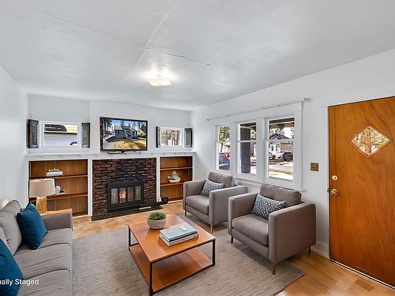 Lovely Family Home in the Heart of the South Hill! This 4 Bedroom/1 Bath home offers a living room with original built-in shelves around a wood burning fireplace. Main floor includes the dining room, kitchen, living room, 2 bedrooms and 1 bathroom along with main floor utilities in the mudroom with access to the backdoor. Upstairs has 2 bedrooms (one does not have a closet) and a large second living space or bonus area that was all redone in 2016. New roof was put on in 2016. New furnace and AC in 2022. Private and paved driveway leads to the 2-car garage in the back of the lot offering ample parking. Front and back yard have sprinkler system for easy lawncare maintenance. Back patio is paved and covered and has a wheelchair ramp for handicap accessibility along with the removal of the tub with newer walk-in shower. Enjoy an afternoon cup of tea on the quaint covered front porch. Come make this home your own!