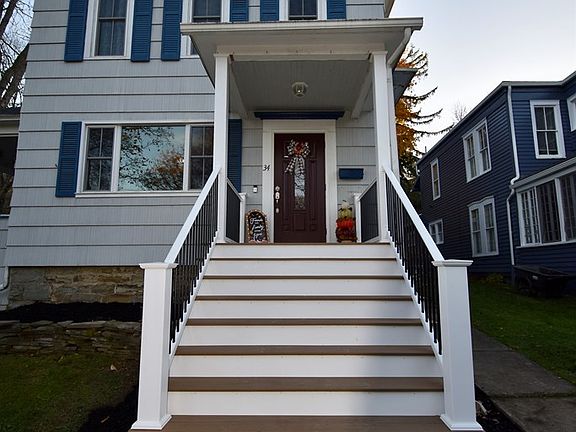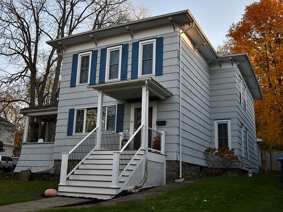 This spacious house has a brand new front porch & stairs in the last month. Large kitchen with plenty of cabinet space and large island. First floor has a laundry room and full bathroom, as well as a bedroom currently used as an office. Formal dining room as well as casual dining space in the kitchen. Enjoy outdoors time on the covered side porch or the open deck in the fenced in yard. Upstairs features a second full bath, a spacious owner's suite with walk-in closet & full bath, and two additional bedrooms. Lots of closet and storage space in this home.
