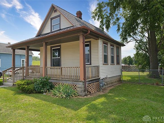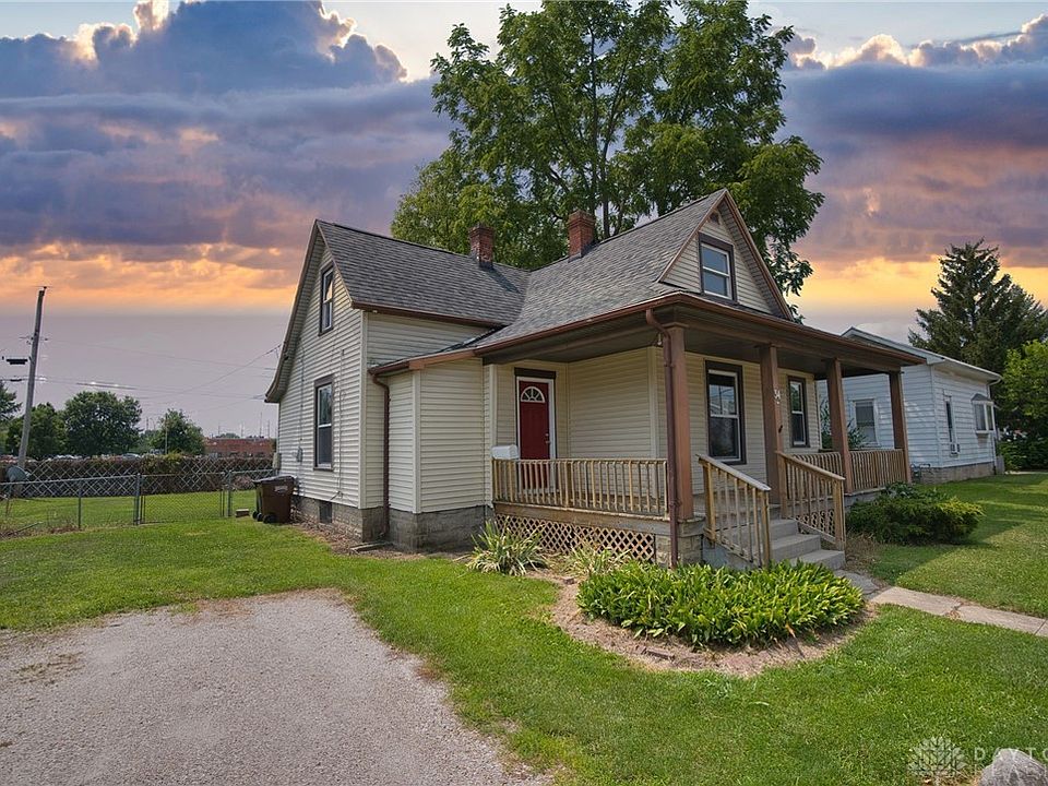 Historic Cape Code located just outside Downtown Fairborn. Enter from the expansive front porch into a small entry, to the left is a 1/2 bath/water closet, straight ahead is the dining room featuring built-ins and an accent wall adding a unique element of design. To the right, a spacious living room leads to a sunporch/study, perfect for working from home or curling up with a book in the afternoon sun. Large kitchen with abundant cabinet and countertop space, and an exit to a deck with no rear neighbors! Main floor also hosts a full bath complete with clawfoot bathtub, fully plumbed for shower. Upstairs, three decently-sized bedrooms (one is a pass through) and closets for all. Updated windows, lots of available storage in the unfinished basement and an updated roof in 2015. Please note, home being sold in "as-is" condition.