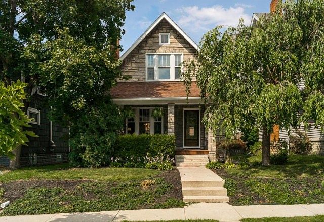 From the covered front porch, through the home into the fenced backyard, Clintonville character in this charming 2-story is priceless! Built in 1902, this 2BR 1BA home has hardwood floors throughout original to the time period. Sliding French doors separate the formal dining and living spaces. Light flows in from all directions through the Pella Architectural Series windows. Freshly painted walls and woodwork accents the custom built-ins around the fireplace. An additional building on the alley can be used for storage as well as the full basement. Updates include: A/C, windows, fencing, downspouts, bathroom, appliances, paver patio, and porch decking. Walk to parks, restaurants, shopping, schools and more! You will not want to miss this!