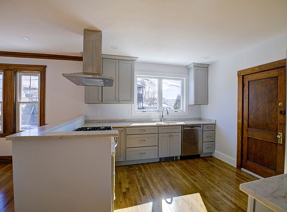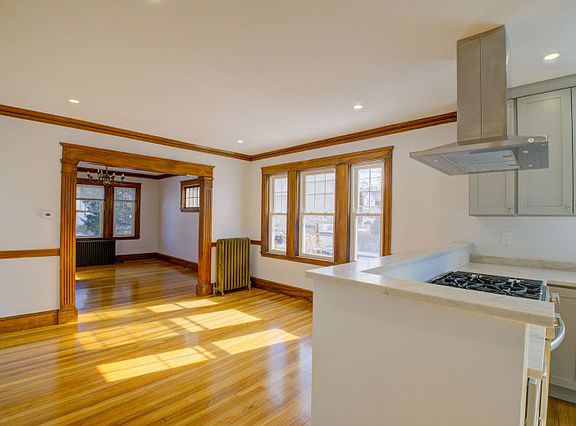 Beautifully renovated & ideally located West Roxbury apartment - 2 Bed 1 Bath that combines original details with new upgrades throughout. This first floor apartment has great flow with an open-concept kitchen & dining room. The kitchen is replete with all new stainless appliances, new cabinetry & gorgeous stone countertops. Deep basin sink with gooseneck faucet & dishwasher make it ideal for cooking & entertaining. Tons of light with picture windows in the kitchen & Living room & lovely accented Gum Wood trim & original oak floors throughout. Brand new renovated bathroom with oversized tiled shower & new fixtures. The bedrooms are graciously sized, and accommodating of King/Queen beds. Lots of energy upgrades with closed cell foam insulation throughout & combined high efficiency on-demand water heater & boiler. Well manicured yard & adjacent to West Roxbury Commuter Rail & Bus Routes. Landlord Offering an 18 Month Lease - through Aug 31st 2026. Base Rent is $3,150 + Utilities (Gas, Electric & Water) Water is separately metered. Free Wifi in the building - though a Router or extender may be required. Base Rent to increase to $3,200 Sept 1, 2025 through remainder of Lease. First, Last & Broker Fee (1 month's rent) required for move-in.