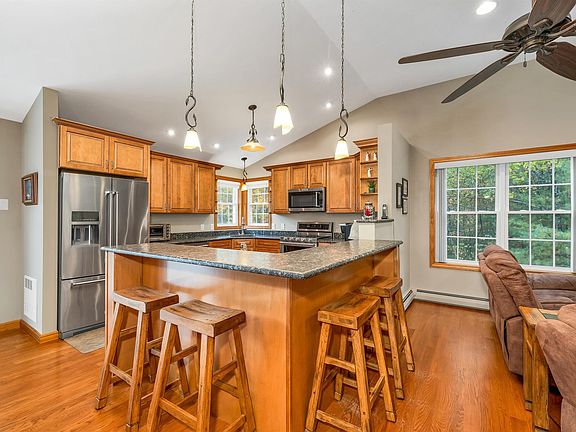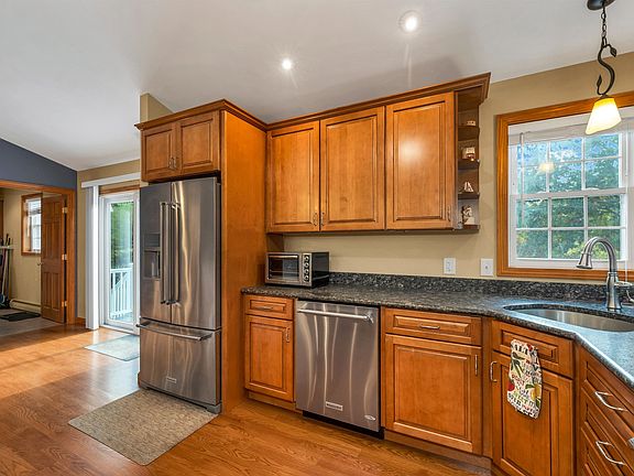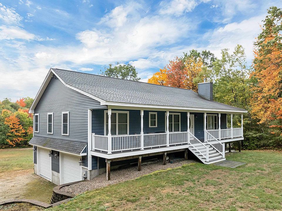Tucked away on 5.2 acres in Effingham NH, this spacious ranch offers comfort, privacy, and classic New England charm. Well maintained by its original owner it features a welcoming farmer’s porch, a large back deck, and two car garage. A small fenced-in apple orchard adds a special touch to the landscape. Walk inside to open concept living, beautiful stone fireplace, and fully finished lower level with walk out to the backyard. Close to lakes, trails, and the White Mountains, this home is ideal as a year-round residence or a peaceful retreat.