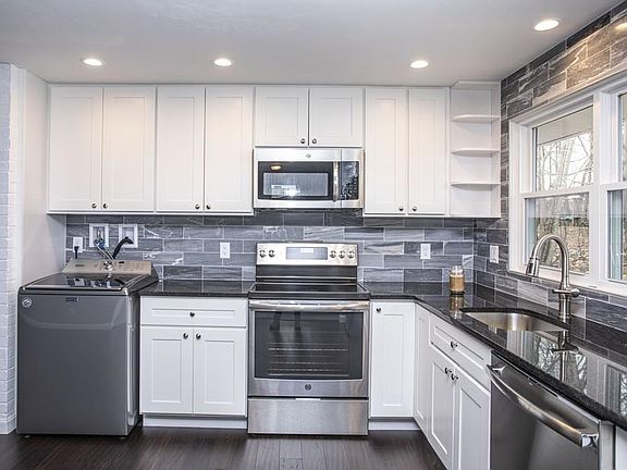 Incredible re-model just completed. Open floor plan is exceptional including engineered bamboo flooring with leading to full bathroom to include custom tile work. There is plenty of room to entertain in this one level beautiful home with a sliding glass door leading to an Azek deck. Custom kitchen with exceptional white cabinets and black granite works well with the marble back splash. Stainless steel appliances make for an eye popping experience when entering the home. Three bedrooms all with new berber rugs. All new windows throughout as well as all new plumbing and wiring and brand new HVAC including central air. Master bathroom includes custom tiling and glass doors that must be seen in person to truly appreciate. Barn doors on both bath rooms truly capture all the custom work done on this California Ranch.