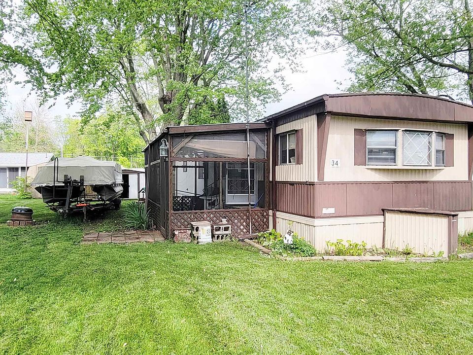 Looking for a summer getaway? This well kept mobile home offers just that! You'll enjoy an eat-in kitchen, nice sized living room, 2 bedrooms, full bath, and a screened porch. There's even a fire pit to enjoy on cooler evenings. Steps away from the lake, you'll have access to a boat launch along with a shared pier (you'll own 1/2 the pier). Mostly furnished and all appliances included, but not guaranteed. Survey at buyer's expense. Property to be sold As Is. *2003 20' Playbuoy King Fisher Anglar pontoon with awning and cover, along with the 2004 boat trailer can be purchased separately.