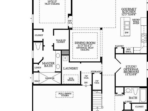 The elegant two-story foyer leads to the private study with double doors and the formal dining room. The kitchen boasts a center island that overlooks the sunlit breakfast area, the spacious great room and the formal dining room creating an ideal space for entertaining. The master bedroom includes a walk-in closet and private bath with a dual-sink vanity and a shower with a seat. Ten-foot ceilings throughout the first floor. The second floor includes an expansive loft area. Each home includes a paver walkway.