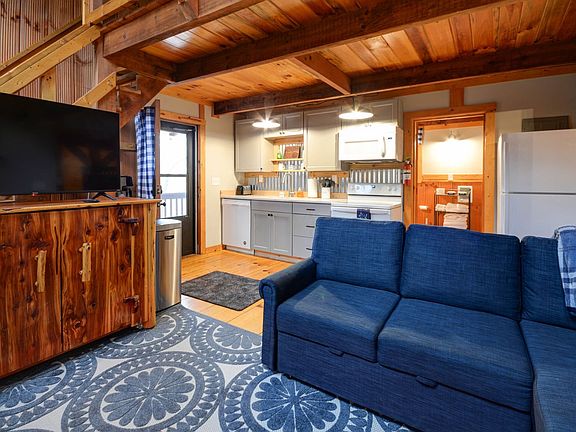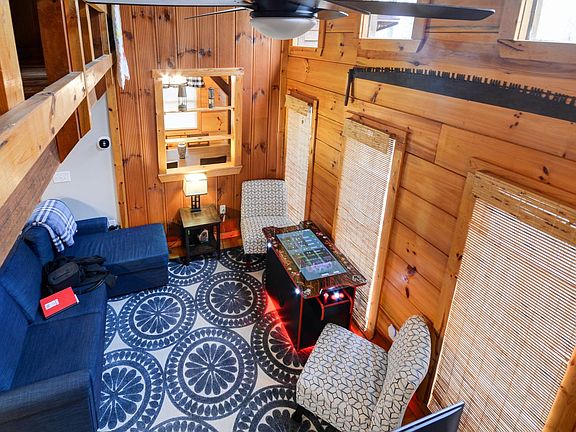 Leave your stress at home and say hello to relaxation at Whispering Winds, a 2-bedroom, 1-bathroom newly remodeled hillside cabin designed specifically for lovers of the outdoors in Kentucky. This woodland cabin, remodeled at the end of 2021, sleeps 6 guests and features a covered porch with outdoor furniture, a private hot tub, WiFi, a charcoal grill, and more. This cabin is the perfect retreat for friends and family. Enjoy an isolated, wooded escape with the comfort of a highly-rated care team available for any concerns during your stay. As you walk in, marvel at the walls and vaulted ceilings. Gather in the living room on the plush furniture and turn your favorite movie on the flat-screen smart TV. Cooking at the cabin is easy and convenient in the fully equipped kitchen with modern appliances. Serve up a savory meal at the dining table with beautiful views of the trees outside. When not exploring the area, head out to the porch and relax on the porch swing or rejuvenate your muscles in the bubbly hot tub. After a full day of outdoor fun, retreat to one of the beds for a soothing night's sleep. There is additional sleeping on the generously sized sleeper sofa. Amenities include a fully equipped kitchen with a dual coffee maker, free WiFi, charcoal grill, private hot tub, washer and dryer, smart TV, expansive covered deck with outdoor furniture, and a 40amp level 2 EV charger. Firewood is not provided, so purchase locally. Limited parking space is available, and vehicles exceeding 2 will need to park at the local park and ride and carpool to the cabin. Trailers are prohibited. The cabin is located in the hills of Campton, KY, offering a great location during your stay with fabulous views. You will be approximately 20 minutes from Nada Tunnel, the entrance to Red River Gorge, where you will find everything the area has to offer, including hiking trails, fishing, kayaking, swimming, rock climbing, bird-watching, and more. Take a scenic drive to see the Red River with numerous varieties of trees, flowers, and outcroppings of rocks. During your drive, keep an eye out for deer, turkeys, and other wildlife in the area. Make your way across the swinging bridge which stretches over the Red River for a truly memorable experience. Experience history when you visit Natural Bridge State Resort Park, only 20 minutes away, featuring a million-year-old sandstone arch accessible via hiking up and down the mountain or taking the sky lift. Get out on the water and enjoy canoeing, kayaking, fishing, and stand-up paddleboarding on nearby Mill Creek Lake. Soar through the mountains on a thrilling zip line ride in Cliffview or take a short drive through the Gorge to Frenchburg for a family-friendly zip line ride for all ages. Southeast Mountain Guides offer world-class rock climbing and rappelling, lessons, and guided climbs. Grab the kids and take them to Thrillsville in nearby Slade, which features kayaking through a 100-year-old limestone cave, miniature golf, and more. While in the area, stop by the Reptile Zoo for a unique experience. Whispering Valley Riding Trails are just 35 minutes away and offer horseback riding through the forest and views of waterfalls, ponds, rock outcroppings, and more. Satisfy your hunger at Miguel's Pizza, Red River Rockhouse, Hop's, or Sky Bridge Station, all offering delicious food and drinks with vegetarian options. A security camera faces the front door. 4WD is highly recommended as the cabin is located up a steep hill. Check-in begins at 4 pm and check-out is at 11 am. Arriving early or departing late will result in additional charges. No smoking is allowed inside, only outside. No pets are allowed. No events, parties, or large gatherings are permitted. A minimum of $350 per pet will be charged for pets brought to non-pet-friendly cabins or for pets that were not pre-approved. Additional fees and taxes may apply. Photo ID may be required upon check-in. Occasionally, guests may experience weather conditions or power outages that are out of the host's control. The hosts will do all they can to assist but are not responsible for issues beyond their control. The owners make every effort to keep the hot tubs functioning perfectly, as they are the most requested amenity. However, mechanical problems may occur that cannot be resolved quickly in this remote area and no refunds are made if this occurs.