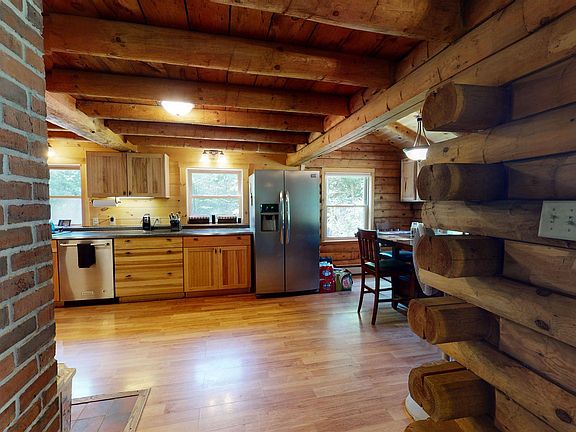 Just Listed in Rochester! This 3 bedroom Cape Cod styled Log Cabin is nestled on the southern border of town away from the lights of the town, yet close to travel ways. On just under 7.5 acres, you can hang on the large covered porch, or sun bath on the back deck. The interior offers a living room, large kitchen/dining combo, full bath and a bedroom on the first floor. The second floor offers 2 additional bedrooms, a 3/4 bath and another open space suitable for storage or a private sitting area. The basement provides for a great workshop, utility room & laundry area! Move right in and start to enjoy all the nature and beauty this home has to offer! The owner has enjoyed the super easy access to the state snowmobile trails and an abundance of wildlife right in his own backyard! No showings prior to the open house. Showings to begin at the PUBLIC OPEN HOUSE on Wednesday 8/25/2021 5:00pm to 7:00pm.