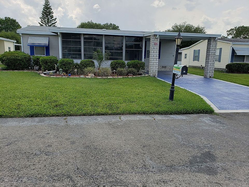 Adorable 2+ bedroom, 2 bath home in The Hamptons Golf and Country Club of Auburndale! Partly furnished with new flooring and roof with transferable warranty. Perfect retirement or vacation home with low lot rent! Two nice sized bedrooms and 2 baths! Also a den or office is included. A great lanai is perfect for relaxing and viewing your nice grounds!! LIVING ROOM 11' 4 x 18 Newer Carpeted Flooring, Ceiling Fan, Bright and Open! Spacious and Open! BONUS ROOM which can be used as an office/ den. Newer Carpeted flooring KITCHEN 9 x 11 A clean and open kitchen, with newer vinyl flooring MASTER BEDROOM 11' x 11' 4 Peaceful and quiet, with a ceiling fan, newer carpeted flooring, walk in closet with shelving that measures 4 x 6' 8 MASTER BATHROOM Step in shower with glass sliding doors, comfort commode, vanity, mirror and mirror medicine cabinet. Newer Vinyl flooring GUEST BEDROOM 9' 3 x 9 Newer Carpeted flooring, Ceiling Fan, Closet measures 2 x 4 MAIN BATHROOM Combination tub and shower, right size vanity, vent window LAUNDRY ROOM Off of kitchen, washer and dryer, cabinets above, small utility closet FLORIDA ROOM 10 x 18 Located in the front of the home facing the west a beautiful spot to watch the sunrise. A great place for visiting with friends and neighbors, vinyl tinted windows, indoor-outdoor carpeting STORAGE SHED 6 x 8 Shed in the rear of the home for extra storage with overhead options! ABOUT THE COMMUNITY The Hamptons Golf and Country Club has an activities director that creates a monthly calendar of activities, there is something to do everyday! Newly updated/renovated clubhouse with a library, exercise room, billiards room, ball room, computer center with free WIFI, card tables, game room, TV room, recreation hall and a banquet hall. There are plenty of outdoor amenities to enjoy updated heated swimming pool, and hot tub, lighted tennis and shuffleboard courts, horseshoes, half court basketball, pickle ball, bocce ball, stocked ponds for catch and release, and more! Dog park for your fur-babies! RV and boat storage, pet areas The Hamptons Golf and Country Club is a prestigious golf course community and a golfers dream come true! Golf, golf, & more golf right at home! 18-Hole Golf Course, Putting Green & Golf Pro Shop All listing information is deemed reliable but not guaranteed and should be independently verified.The buyer assumes full responsibility for obtaining all current rates of lot rent, fees, and pass-on costs. Measurements are approximate. Additionally, the buyer is responsible for obtaining all rules, regulations, pet policies, etc., associated with the community, park, or home from the community/park manager.