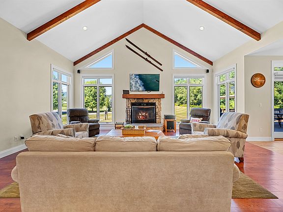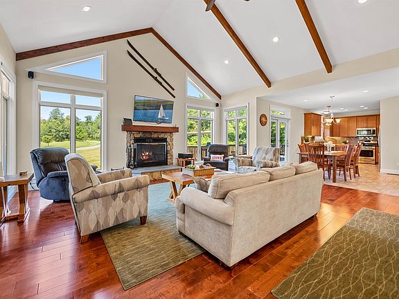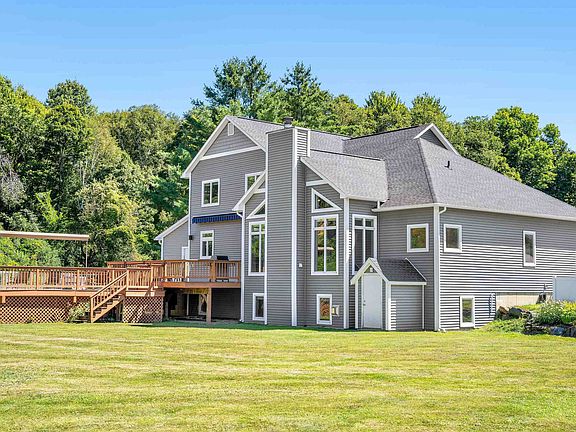Immaculately maintained 4-bedroom, 5 ½-bath contemporary home set on 3.2 acres, just minutes from golf, the recreation path, skiing, and all of Stowe’s world-class amenities. Designed for gathering with family and friends, the open kitchen, dining, and spacious living room with cathedral ceilings and wood burning fireplace create a warm and inviting atmosphere. In the warmer months, step outside to a large deck with an inset pool, hot tub, and retractable awning for shade—perfect for summer and fall entertaining. The main-floor primary suite offers a spacious retreat with a large double vanity, soaking tub, and separate shower. Upstairs, you’ll find three generously sized bedrooms with mountain views, a versatile bonus room, and two full baths. Explore the lower level with a custom wet bar, expansive entertainment room with a gas stove, two additional bonus rooms, and two full baths—ideal for hosting guests or creating private spaces for work and play. An oversized garage provides plenty of room for cars, outdoor gear, and sports equipment. This home offers the perfect blend of comfort, convenience, and resort-style living in the heart of Stowe.