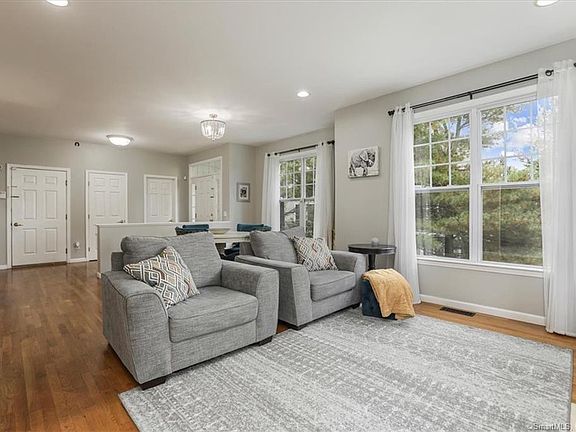 Private end unit Harrison w/ 2 car attached garage, NO STAIRS! Parking for 6 cars, 2 in garage & 4 in dway plus lots of visitor parking near by. Updated!! Hardwood floors on main level & in all bedrooms. Freshly painted offering 3 bedrooms 2 full & 2 half baths. Primary bedroom suite has walk in closet & updated full bath with relaxing soaking tub & walk in shower. Loft on top floor has many uses: perfect for home office, currently being used as guest room. Finished walk out lower level has half bath & sliders lead to patio. Resort like clubhouse! Just move in!