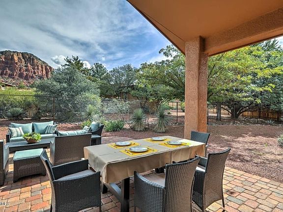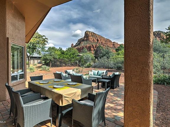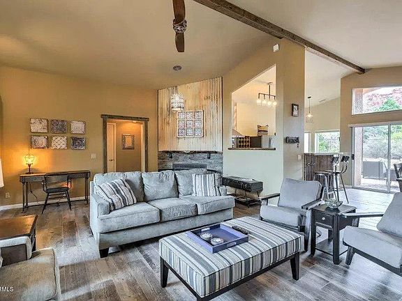 Step into this newly remodeled ''Modern Farmhouse'' home with a warm mix of form and function. With age-worn finishes, streamlined shapes, and textiles, this home has the lived-in rustic look. Open the ranch style barn door entrance to the spacious master suite with walk in closet, beautifully designed bathroom and views of Bell Rock. The efficient kitchen has new appliances, breakfast bar and sliding doors to a spacious paved patio designed for entertaining while enjoying Chapel Rock views.This home has a lovely open floor plan, with the living area centered in the middle of the home, with high ceilings and a direct view corridor of Cathedral Rock. New gas fireplace and plenty of room for an enjoyable setting for family/guests.
