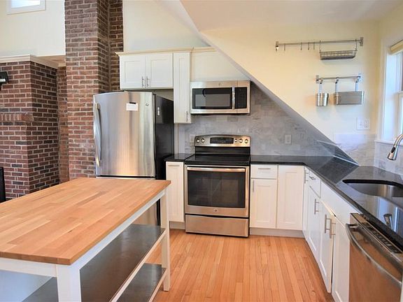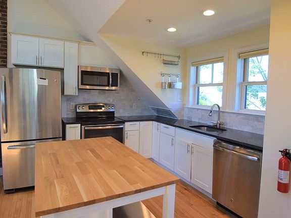 Beautiful top floor two bedroom apartment with lots of natural light. High ceilings, exposed brick, and hardwood floors throughout. Kitchen is newly renovated with stainless steel appliances and a private balcony. Open living room with a fire place, large bathroom with washer dryer, and two spacious bedrooms.