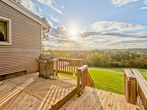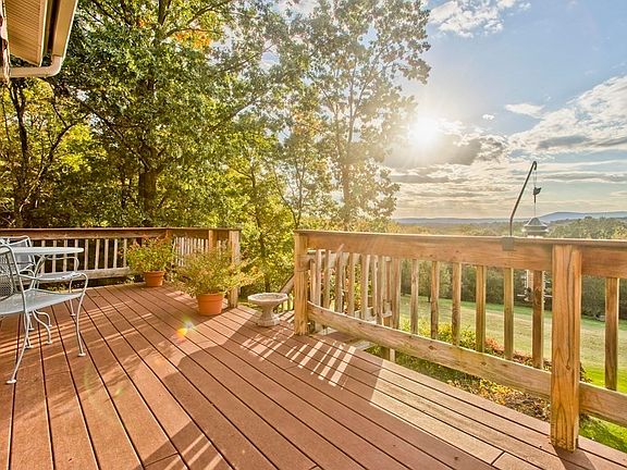 SERIOUS PRICE IMPROVEMENT! The views from this home are captivating! This custom built contemporary offers a warm and welcoming foyer leading to the sunken living room with large fireplace, vaulted ceilings and doors out to the deck where you'll want to spend all your time! The kitchen has a bay window dining nook, Corian counters, oak cabinet fronts and SS appliances. Step out from the dining room to another deck for grilling while enjoying the view. The upper level has three bedrooms, including the main bedroom with vaulted ceiling, tiled half bath & walk-in closet. There is a full tiled bath on this level as well. The lower level of the home is wonderful retreat with family room with gas stove, a second tiled full bath, and a great area for a home gym. The sliders off the family room lead out to a patio ready for the hot tub! New roof on back of house, AC & furnace 2009, Satin Series water softener, UV water purifier, and generator.