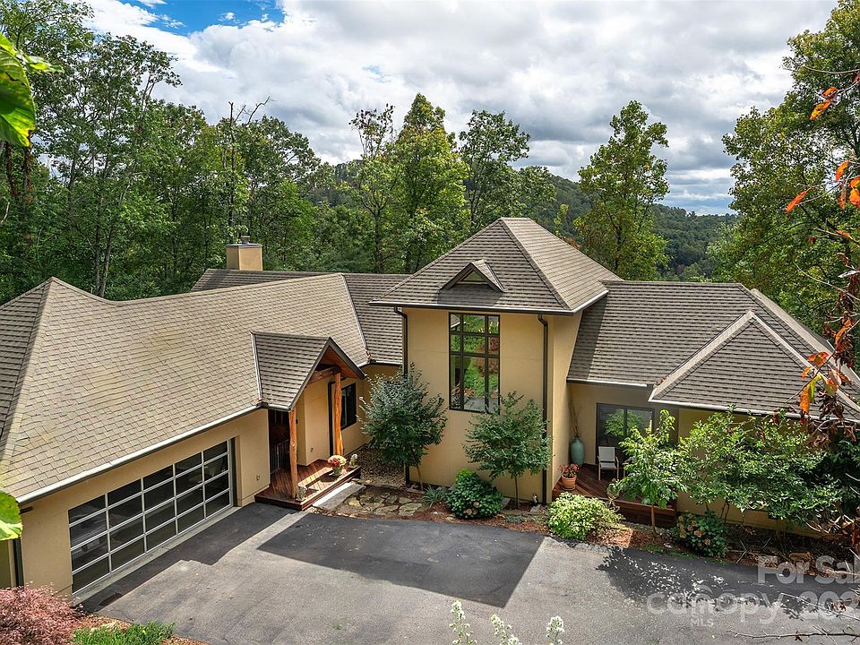 Welcome to 34 Finch Drive, located within a private, gated, and peaceful community just minutes from Asheville and Weaverville. This beautiful custom home, designed by an international architect and built in 2015, must be seen to be appreciated. The interior features a primary bedroom and bathroom with heated floors on the main level, offering a 5-star experience every day. The kitchen is a space to gather around with friends and family, featuring a layout and appliances perfect for the serious chef. All the spaces flow seamlessly together, maximizing efficiency and reducing wasteful circulation. The current art studio that could be a 4th bedroom has a mini split. The lower level walk out basement is great for entertainment and has vibrant light and opens up to the almost 2 acre lot with an electronic dog fence. Enjoy the Sonos surround system where you can play different music in each room. Impressively sized decks and porches extend the living space, providing an ideal place for outdoor enjoyment and quiet peaceful time to sit and enjoy the nature surrounding you. Notably, some of the deck posts are crafted from durable black locust logs, known for their strength and resistance to decay, ensuring both long-lasting beauty and functionality. Whether you're hosting guests or simply relaxing, these decks offer an exceptional outdoor experience. The terrace level includes a full sized apartment/in-law suite with an independent entry, its own foyer with elevator access, living area, full kitchen, bath, bedroom, and a private deck. For those who enjoy working in the 2.5 car sized garage, you'll appreciate the comfort of its mini-split system. This home is filled with natural light and the nature blends seamlessly throughout the home creating a feeling of being outdoors from every room. Enjoy the beautiful weeping cherry tree in the back. The community has many gatherings and clubs to participate in and boasts scenic views making this an ideal place to call home. You must see this stunning home in the beautiful Versant community.