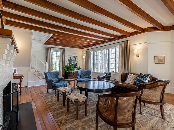 Built in 1905 as a ''seaside cottage'', this adored Cumberland Foreside home sits on 2 peaceful acres along one of southern Maine's most coveted coastal roads. Gracefully transformed over the past 5 years while retaining every ounce of its original charm, the home welcomes you to its grand living room with hand hewn beams and a wood burning fireplace. The sun drenched office offers a cozy window seat and wonderful bookshelves. Through the arched doorways is the dining room, opening effortlessly to the rear sitting room with its woodstove insert and walls of windows. The kitchen is the true showstopper, with a bank of windows, fine fixtures, high end appliances, and slate radiant heat floors, integrated with stunning designer details throughout. The back wing of the first floor has been renovated with beautiful built-ins and a charming powder room to create an eminently functional space in high style. The screened-in covered breezeway leads to the newly rebuilt two-car garage. Upstairs, 5 bedrooms and 2 full baths provide ample space, with flexibility for work from home or fitness spaces. Outside, delight in all of Maine's natural glory, with sugar maples, ancient oaks, and shady hemlocks forming a playful grove beyond the fenced in backyard, with plenty of space for additional accessory structures as desired. An enchanting property, offering a lifestyle worthy of pursuit.