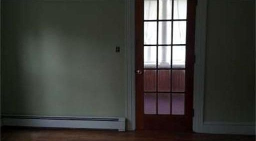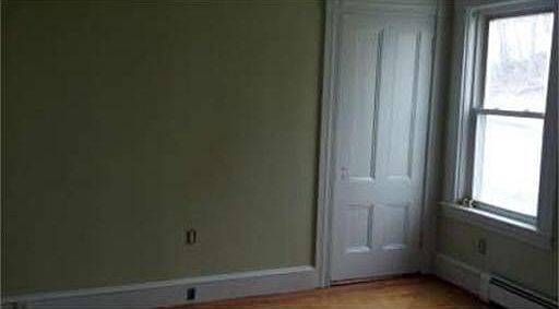 Newly painted 4 room, 1 bedroom on first floor of 2 unit building. Fresh paint, hardwood floors redone! Large eat-in kitchen has dishwasher. Extra area which can be used as a closet or pantry . Unheated sun room off the living room with newer windows. Declawed, neutered cats negotiable. Beautiful tin ceilings in kitchen and dining room. Pictures of kitchen coming -- in process of being painted. First, last and security required but security can be paid over time.