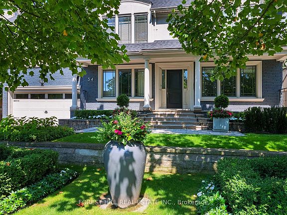 This is the one! 34 Forest Ridge Drive checks all your boxes beginning with its stunning curb appeal. Situated on a 59' wide lot on this quiet and most coveted street in upper Forest Hill Village, this sophisticated home features 4+1 bedrooms, a main floor office, a main floor family room and a main floor powder room. The welcoming foyer with large closet invites you into an elegant living space where you can relax and entertain. The living room is bright with a gas fireplace and views of the stunning back yard with pool and beautiful garden. The stylish dining area is spacious enough for large dinner parties yet intimate enough for smaller ones. The incredible eat-in kitchen features stainless steel appliances, Caesarstone countertops, two built-in Wolf gas ranges, two Miele dishwashers, a Sub-Zero fridge, two built-in warming drawers, Avantgarde wine cooler and more. The main floor is hardwood throughout with beautiful views overlooking the backyard pool and garden. Upstairs the gorgeous large primary bedroom has a vaulted ceiling, a sizeable seating area and a six-piece en-suite with heated floors. There is a walk-in closet and two double closets as well as abundant additional storage in the ensuite. There are three additional upstairs bedrooms. Bedroom 2 features a tandem room and 4 double closets with built-in storage. Bedrooms 3 and 4 each has two double closets with built-in storage. The basement rec room is large with good ceiling height. There are an additional bedroom, bathroom and a cedar closet on the lower level. The laundry room is spacious and storage is abundant. This is a great location with close TTC and highway access. Walking distance to shops, good schools, parks, the Beltline Trail, Cedarvale Ravine and more.