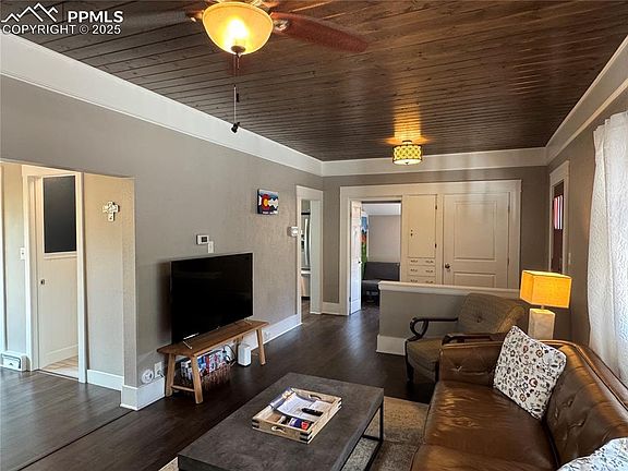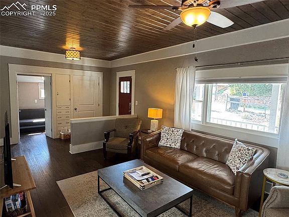 Mint condition home with great views, close to downtown Manitou Springs! Don't let the year built be a concern. This home is completely updated, inside and out. Enjoy the mountain views from the totally secluded yard or from the old-school, covered front porch. Carpet-free home - luxury vinyl floors throughout. Extra high, tongue and groove wood ceiling and a wonderful, remotely controlled electric fireplace in the living room. Granite counter-tops and and stainless steel appliances in the kitchen. Tiled, stand-alone shower in the bathroom. Amenities include: central air conditioning, 50-gallon water heater, Rheem furnace, radon system, Trex deck with a metal railing, xeriscaped front yard and imitation, low maintenance grass in the rear, vinyl windows, vinyl sliding glass door, ceiling fans in both bedrooms, storage shed, sump pump, off-street parking and 200 amp service. Re-wired and re-plumbed. Newer roof. Easy walk to downtown Manitou Springs!