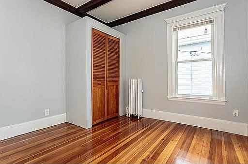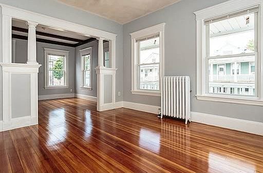 Available now! Oversized, second floor unit gets tons of light. Beautiful hardwood floors and detailed woodwork throughout. Two bedrooms of equal size. Front foyer could easily double as an office or sitting area. Large living room adjacent to a formal dining room with a built-in hutch. The kitchen has newer appliances (gas stove, refrigerator and dishwasher) and a pantry for plenty of storage. There are front and rear porches, shared back yard, storage and a dedicated washer/dryer in the basement. This location is rated a "very walkable" 82. Close proximity to route 93, Tufts University and Medford Sq. Davis Sq. is about a mile away. Bus lines at either end of the street take you to Medford Sq, Davis Sq., the Red Line and the Orange line. Parking is on street by permit during the week. Vacant and waiting for you!