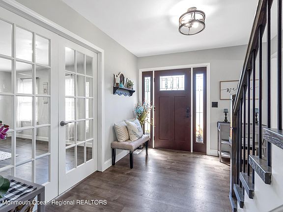 Gorgeous 4 BR/3 Bath Colonial situated on almost 1.5 acre lot! Home features many upgrades including: full finished basement, updated bathrooms, newer 30-yr Timberline roof, fresh paint throughout, new luxury vinyl plank flooring, custom built-ins, french doors, and more. Home features xl rooms and tons of storage throughout. Large primary suite features custom bath and walk-in closet. Garage has heating/cooling system. Home has ample parking with circular driveway. Relax and entertain in your large private yard. Close to shopping, restaurants, highways, and the shore. Award-winning school system.
