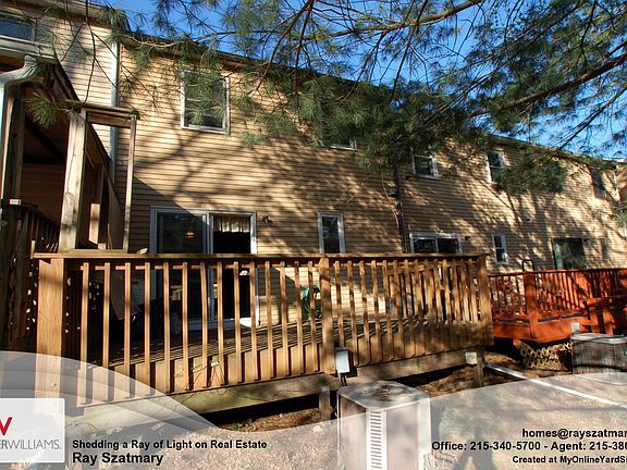 This townhouse in the borough with low HOA fees has a full finished basement and reserved parking at the door. Enter into the large (15x23) living room with laminate flooring that goes right through into the kitchen. The double sided wood burning fireplace creates a division between living room and the dining, kitchen area. This is the one of only a few units in Colonial Green I have seen with a peninsula and bar seating. No granite but a unique tile counter top is very attractive. There is a six foot siding door off the dining room to a nice sized deck and stairs to the yard. Deck is shaded by an attractive white pine and has enough space for table, chairs and barbeque. Powder room is conveniently located off the living room near the basement door. Basement is dry and odor free and finished with dated paneling which you could paint the color of your choice. Laundry has its own separate tiled and painted area which is easy to keep clean. Second floor is all carpeted. This home features an unexpected large master with on suite including full tile bathtub. The other two average sized bedrooms will meet most needs. The hall full bath is also appointed with tile and tub. This community is in a prime location. Less than 1.5 miles to the train station and center of town with restaurants, night life, museums, etc.