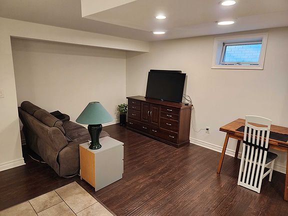 A spacious one bedroom basement apartment with an open kitchen and full bath. There is shared laundry with upstairs tenants, and the water based heating in the main floor (the ceiling of this unit) provides comfortable radial heat throughout, while also providing sound dampening between the units. A very walkable location (an 82 Walk Score!) in a family oriented neighborhood close to grocery, shops, and restaurants. Nearby bus stops for local routes, a short walk to the major 900 buses for commuting through Durham. Just a 5 minute drive to the Ajax GO Station for city commuters! Parking available in shared driveway. *Viewings will be possible after December 14th, a video walkthrough can be provided in the meantime. Evening and weekend showings, please bring and wear a mask. **Unfurnished photos to follow, bed pictured is a king size. 1 year lease, looking for long term tenant. Utilities split 60/40 with the upstairs tenant. Please inform of any pets, the backyard is not accommodating to dogs due to the pool. Parking is one vehicle in shared driveway. Storage space in unit hall closet. No smoking in the backyard or front porch. We will be asking for a OREA 410 Application. First and last months rent will be required.