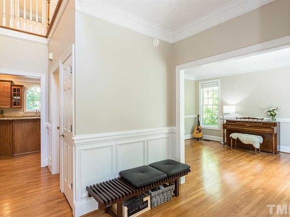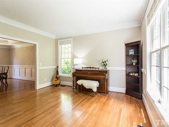 Price Improved!Stunning all brick custom home in the Preserve at Jordan Lake nestled on a private .43 acre wooded lot, comm pool, tennis & walking trails, optional golf. Classic flowing floorplan with formal dining, breakfast area and kitchen open to family room. 2nd floor has a huge master with WIC, 2 bedrooms and bonus room (with closet). Daylight walk out bsmt has plenty of space for entertainment area- wet bar, billiards, fitness room & full bathroom. Tankless hot water heater and many other features!