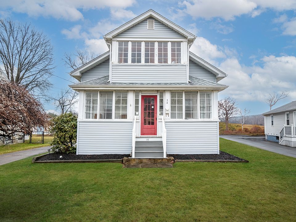 Classic bungalow with high ceilings long windows and craftsmen style workmanship. Two charming enclosed porches, one of which is off the second floor bedroom and in days gone by was considered a sleeping porch for warm summer nights. Although this home has all the appeal of a house built in a by gone era, you will enjoy the many updates including: kitchen and baths, newer windows, roof, siding, furnace and hot water heater. Summers can be spent relaxing on the deck and swimming in the above ground pool. Close to parks, golf course and highways, this is a must see home.