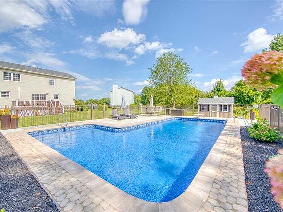 Fishkill, 4 bdrm 2.5 bath, 2,688 sq ft majestic Colonial on 1.04 acres of sprawling property. located on a cul-de-sac, close to schools, parks, shopping, I-84, Taconic Pkwy & Rte-9 for easier commute. Walk-in to a beautiful foyer w/ high ceilings & plenty of natural light, to your left a modern family room designed for entertainment, head right off entry to continue to the living room w/ hardwood floors throughout the home & fireplace for winter warmth. Semi-open concept formal dining room leads you to the large eat-in kitchen w/ plenty of cabinetry. Stainless Steel Appliances & beautiful tile floors. Towards the back find the laundry room & off the kitchen to large deck & enormous back yard paradise w/ view to a fenced in ground pool. Upstairs spacious master w/ full en suite bath & walk-in closet. Three additional Large bedrooms w/ plenty of sunlight and closet space as well as a full hall bath. This home is ready to be yours! 2021 taxes w/ostar $9272