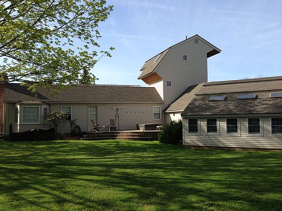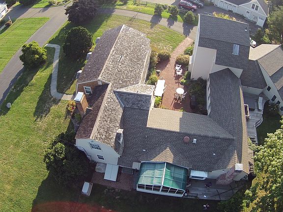 Remarkably Fine! Located in the Heart of Sachem's Head this stunning home sits on the top of the knoll and has distant water views. The home has been recently updated with new kitchen and baths, gleaming hardwood floors and more. The oversized foyer is between an oversized living room and dining room - each has a striking fireplace and chair rail, the living room also has champhered beams and delightful window seats. Through the butlers pantry to the remodeled eat-in kitchen which included granite counters and a 5 burner Thermador cooktop AND a generous solarium which leads to a mahogany deck. The back hall includes 2 pantries and other storage closets and the way out to the large brick patio which is surrounded by gardens. Flanking the north side of the patio is the informal "L". including a paneled study with fireplace, a guest room/office and full bath (which has an exterior door leading to the large rear mahogany deck with out-door shower and hot-tub), and the grand mud room, the 3 car garage and the heated studio. On the 2nd floor of the main house are 3 bedrooms, including the master suite with fireplace, two full baths and the laundry room. The "Tower" is above the mudroom and hold a large family room with bay window and window seat and another bedroom with full bath. The views over the treetops to the water are fine. Sachem's Head Asso. Membership affords beach rights, kayak/boat launch and access to tennis and paddle ball and the Yacht Club is just down the hill.
