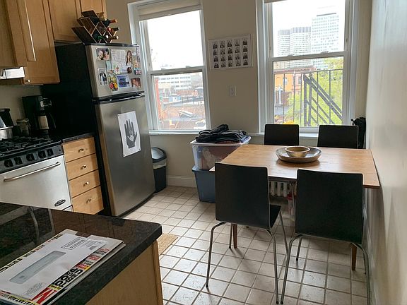 Sunny floor through 1 bedroom on Beacon Hill available September 1. Updated kitchen with combo W/D, gas cooking, dishwasher. Common roof deck one flight up off this fifth floor walk up space. Living room has a wall of windows with Western exposure. Heat and hot water included in the rent. No pets please. Last months rent and security deposit also due at time of lease signing.