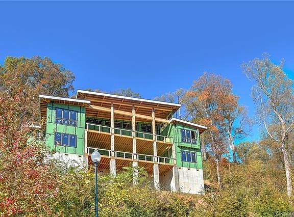 Stunning, contemporary NEW CONSTRUCTION built by Aurthur Rutenberg. "High Ridge" boasts 2 levels of full living with incredible MOUNTAIN VIEWS. Main level FEATURES over 2700 SF with master BR, mini master (same level), large walk-in closets, open concept floor plan w/hardwood floors, screened porch w/outdoor fireplace, and spacious deck. Ceiling heights from 20 feet to 16 in great room. The lower level with 10-ft ceilings features 2 bedroom suites, with two offices or additional bedroom space, a family room and a walk-out large covered porch. Minutes to all of Asheville and nearby Country Club of Asheville.