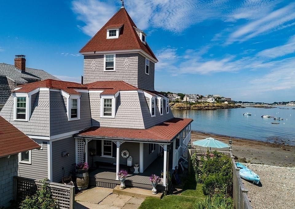 Built by a sea captain for his daughter, this enchanting home in Hull has held an iconic presence on Gunrock Beach since 1880. Endless sunset, ocean & Boston Harbor views can be seen from every room but are perhaps best enjoyed from the wraparound porch. The kitchen opens to the dining room & will inspire your inner chef with its Mahogany countertops, custom-built cabinets, butler's pantry & island. The 3-season porch is bright & airy. Find three bedrooms on the 2nd floor & a 3rd floor art studio & cozy cupola hideaway. Take your back steps to the white sandy beach & reap the benefits of direct ocean access, where kayaking, paddle boarding, & boating await. While on the water, enjoy the faraway perspective of this historic home, completely renovated in 2011-12 to offer all the modern conveniences. Architectural details impress at every turn--from wide pine floors to stained glass windows & an original banister with untouched LR paneling. New heating, plumbing, wiring, windows & walls.