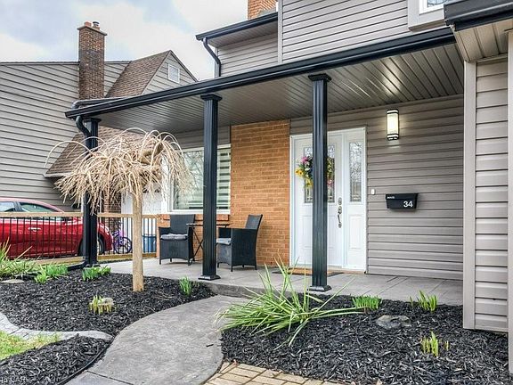 THIS ONE IS A WINNER! Welcome to 34 Hallmark St! This inviting family home with 3 bedrooms & 3 bathrooms plus a finished basement has been very well maintained & updated throughout. Enjoy superior finishes and wonderful features in a very comfortable layout. Updates include: Kitchen, bathrooms, flooring, trim, paint, doors, windows, siding, roof, furnace & a/c. Spacious main floor offers a fully equipped modern kitchen, dining room with patio doors to back yard, bright living room & a convenient 2pc. bathroom. Upstairs is home to 3 spacious bedrooms, including a lovely primary bedroom with a beautiful ensuite bath & walk in closet. This floor is completed with a gorgeous family bathroom. The basement is finished with a cozy recroom & offers a large laundry/storage/utility room. The backyard is fully fenced & ready for outdoor fun! Take your pick of lounging on the deck, splashing in the heated pool or a relaxing soak in the hot tub. Great curb appeal out front with all new siding, new front door, & eye-catching landscaping. An interlock stone driveway & single garage offer plenty of parking. All this in a fantastic North Brantford neighbourhood; close to schools, shopping & recreation. Don't Delay...book your private showing today!!