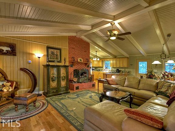 Nice 2BR/2.5BA home nestled on 1.5 private acres off Whitepath Rd, conveniently located between Ellijay & Blue Ridge. Seasonal MOUNTAIN VIEW! This home boasts 2576 finished living space. Main floor features open concept w/vaulted wood ceiling with exposed beams, wood floors & gas log fireplace. Master suite w/lg walk-in tile shower, separate tub & walk-in closet. Guest bedroom & full bath also on main. Lg laundry/utility room can be converted to 3rd bedroom if laundry is moved back to bsmt. Finished basement has 2nd fireplace, 2 den areas & half bath. Plentiful decking and lovely screened in back porch off the living room. 1 car bsmt garage, plus carport. Utility/storage shed. New roof 2011, new HVAC & duct work 2018, new hot water heater 2018.