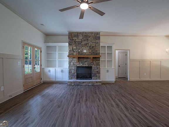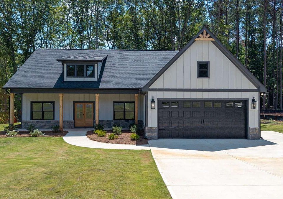 Modern Farmhouse Style Ranch Home Loaded with Custom Features! and Situated on a One-Acre Lot! Board and Batten Exterior Accents along with Stain Grade Double Front Door, Front Porch Post & Crowfeet Accents! Rock Water Table! Black Exterior Window Frames! Covered Front and Back Porch with Stain Grade Wood Ceilings! Custom Paint Colors Inside and Out! Architectual Shingles! 3 Bedrooms and 2.5 Baths! Kitchen boasts an Apron Front Farm Sink! Tile Backsplash! Wood Vent Hood! Soft Close Cabinets! Deep Refrigerator Cabinet! Oversized Kitchen Island! Under Mount Drawer Style Microwave! Upgraded Countertops! Walk in Pantry! This Awesome Open Concept Floor plan has a large great room and features a Stacked Rock Fireplace with rock to the Ceiling plus Cedar Stain Grade Mantle! Built-in Cabinetry on either side of the Fireplace! Master Bedroom with Trey Ceilings and Master Bath features a Free-Standing Garden Tub! Separate Tile Shower w/ Frameless Glass Shower Door! Double Vanity, Framed Mirrors, Granite Countertops and Tile Flooring! LVP type Hardwood Flooring in the Living Room, Kitchen, Dining Room, Hallways, Pantry, Mudroom and Powder Room! Tile Flooring in the Laundry Room and Both Full Baths! Upgraded Wainscoting Trim in both the Living Room and Dining Room! Kitchen Level Entry Two Car Garage with 8 ft tall, insulated garage door with windows and Opener plus Two Remotes! Plus, Additional Parking Pad area!!