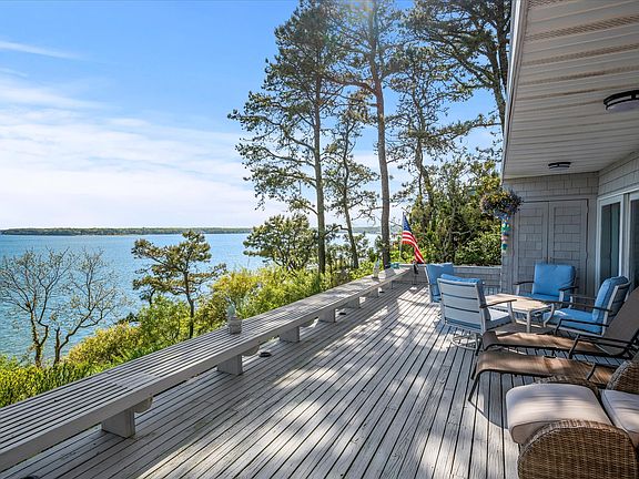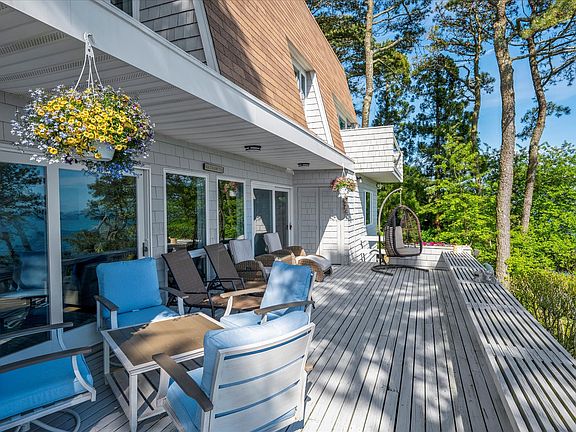 Rental Registration #: RP201462 Experience the ultimate summer getaway at 34 Hawthorne Rd, Southampton. This stunning home, recently renovated with new floors, carpet, and furnishings, offers incredible views and unparalleled luxury. Atop a bluff on a private road, this modern waterfront property provides breathtaking sunrises and sunsets over Shinnecock Bay and the Atlantic Ocean. Every room in this home boasts views of Shinnecock Bay and the ocean. With 180-degree panoramas, the scenery changes daily, offering sights of Meadow Lane, Shinnecock Inlet, the Ponquogue Bridge, and more. The beautiful south-facing deck is ideal for lounging with morning coffee, seaside lunches, or evening BBQs on the bay. Inside, the spacious living room features vaulted ceilings, a fireplace, and a bright, open floor plan. The bedrooms have waterside balconies, and a private office loft provides additional space for guests. The home is set on a beautifully landscaped parcel, surrounded by nature, ensuring peace and tranquility. Rental registration #RP201462