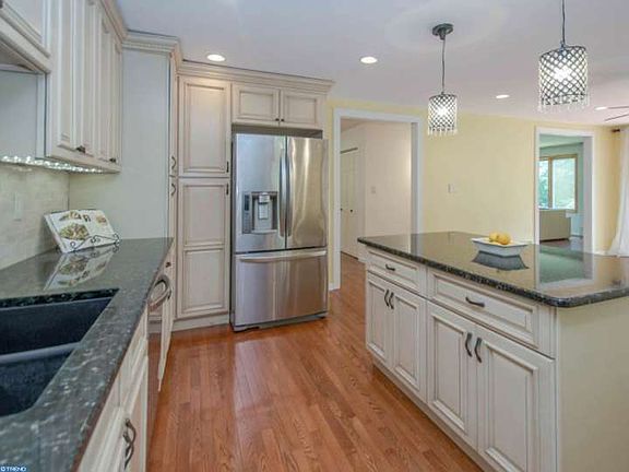 Welcome to this sunny move-in ready contemporary home in the popular Ithan Mills neighborhood of Bryn Mawr! Updated throughout the main level with beautiful hardwood floors, lovely open renovated kitchen(2012)and an enormous finished basement(2008). The spacious main level offers easy living with 2-story entrance foyer, living room, dining room, kitchen, family room and half-bath. The recently updated kitchen(2012) has gorgeous custom cabinets, stainless steel appliances, double sink, high-powered vented cooking to the outside, granite counter tops and an island/bar for seating that opens to a lovely family room. The spacious family room has a floor-to-ceiling brick raised-hearth wood burning fireplace and wall of glass doors leading out to a large deck overlooking a beautiful, private backyard with no rear facing neighbors and plenty of trees lining the back of the property. The dining room and living room offer plenty of natural light with 4 window panels in each of these rooms, beautiful wood floors and generous proportions. On the second floor you will find four large bedrooms. The master suite features two walk-in closets, a four-panel window that overlooks the private back yard, and a full updated bathroom. All baths were updated in 2007. There are three additional bedrooms along with another updated hall bathroom. The basement is completely finished and is a wonderful space for a 2nd family room, exercise or play! One of the rooms is used as a home office. The other two rooms are huge and offer plenty of storage. It's a nice, bright, sunny basement with sliders going out to the back yard. The home also features a large 2-car garage with convenient access to the foyer. The exterior was just freshly painted adding to the curb appeal with a nice brick walkway lined with flowers leading up to the front door. Newer Roof(2006), Mechanicals(2009), New Garage Door just ordered (exterior front picture has been altered to show house with similar garage door). Home is located on a quiet cul-de-sac street within a short walk to Ithan Elementary. Just minutes to Bryn Mawr shopping, restaurants, hospital and train to Philly. All this in award-winning Radnor schools!