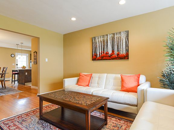 You don't have to sacrifice beds/baths to get into top-notch Glen Rock schools! This affordable home, expanded in 2007, has 4 beds & 4 full baths. Enter into a tiled foyer adjacent to formal living room. The home's main attraction is the open kitchen, dining room and family room. The family room is bright and comfortable, the dining area can comfortably hold a large table/hutch and adjoins the kitchen with center island. A bedroom & bath complete the first floor. Upstairs are 3 bedrooms, all with hardwood. The sunny master suite has bath with Jacuzzi tub and separate shower stall. 2 additional bedrooms share an updated hall bath. The finished basement is large enough for both a playroom and home theater, plus there's a full bath and guest room. Outside is a patio and ample yard. This home is perfectly situated close to elementary and middle/high schools - a huge convenience. You won't want to miss this affordable modern colonial!