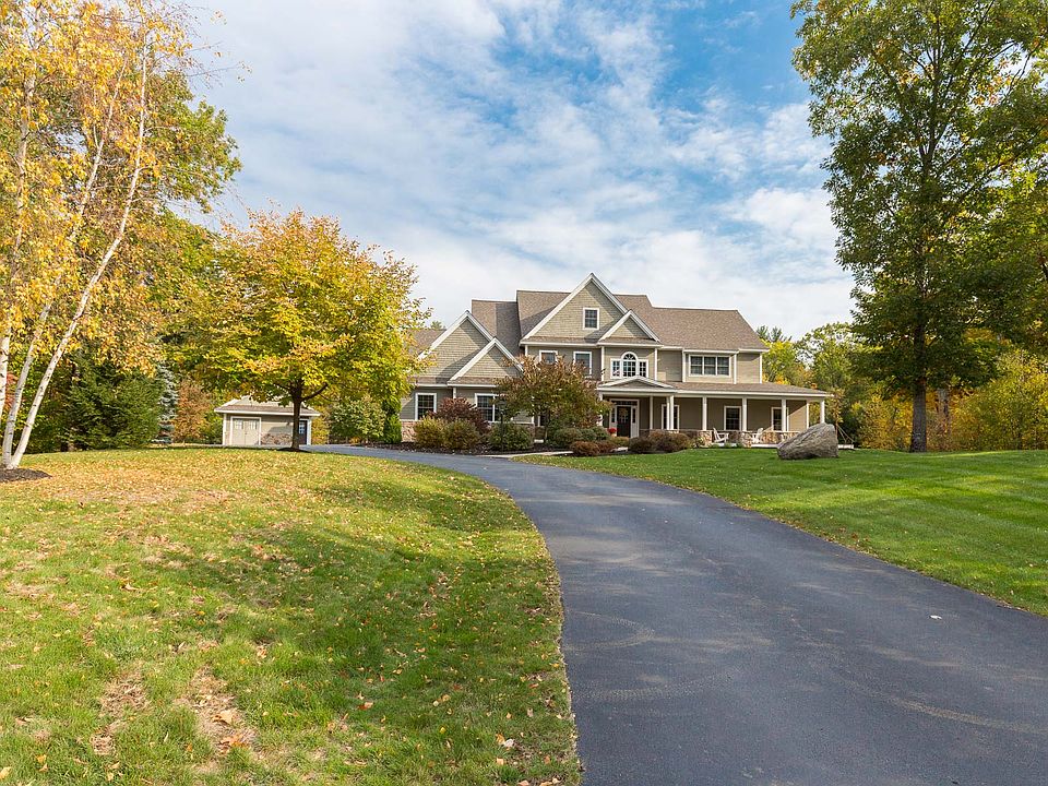 Gorgeous custom built contemporary colonial offers over 5500 sq/ft of living space w 13 rooms,4 bedrooms & 6 baths.This home maintains a wonderful balance of formal & casual living providing the perfect setting for entertaining.Gourmet kitchen featuring Crown Point Cabinetry,stainless appliances w granite island opening to the spacious vaulted great room w floor to ceiling double sided field stone gas fireplace.Family room w granite bar & formal dining room complete the 1st floor.Gracious foyer leads to the 2nd story where you will find a beautiful master bedroom & bath featuring a tiled shower & whirlpool tub w large walk in closet plus a guest bedroom w private bath,2 additional bedrooms sharing full bath & laundry room.Fully finished lower level makes a great recreation room, office & workout room.This home is sited on over 3 acres of land on a private cul-de-sac & desirable subdivision.Relax on the back deck or screen porch overlooking the amazing backyard. In ground salt water pool,cabana w bar, mahogany deck and field stone fireplace.Play your favorite sport on the multi game sport court.Separate custom 20x20 office or studio.3 car garage enters into a tiled mudroom and half bath. Stand alone generator, hot tub, irrigation & security system are just a few more amenities.Close to downtown's Country Store, Library and Main Street Arts.Public Boat launch with dock is a great place to bring your kayak or canoe.Close to town.Easy commuter location. Exeter School System.