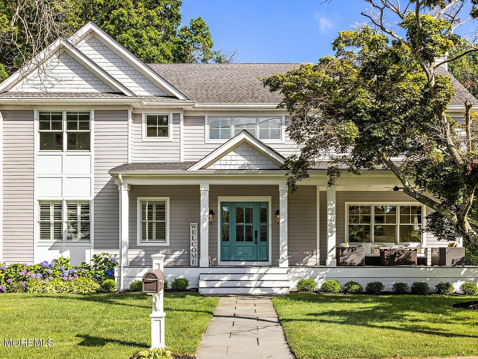 Welcome to 34 Hendrickson Place where Nantucket charm meets Fair Haven. This impeccable home checks every box and is centrally located in town. This 4 bedroom 3 and 1 half bathroom colonial was completely finished in 2016 and is a perfect execution of open concept living. Upon entering the home you are greeted with a double height foyer and open staircase with beautiful millwork leading you upstairs. The kitchen is located immediately behind and is a true entertainer's dream with the ceiling height cabinets, commercial grade Thermador appliances, wine refrigerator, Calacatta marble countertops and a center island crowned with Pietra Del Cardoso limestone which complements this kitchen space perfectly. The eat-in kitchen offers a seamless transition to your private deck with grill and to the living room where you will find the first of two fireplaces in the home. Opposite of the kitchen, you will find the attached dining space leading to the front family room with a gas fireplace and half bath before making your way back to the foyer.