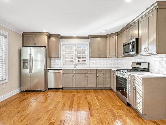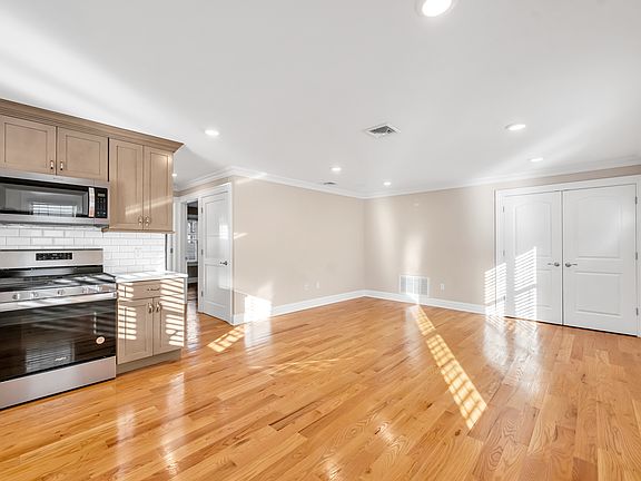 Fabulous new construction two family home offering this spacious 2 bedroom and 1 bathroom apartment with modern finishes throughout. Enter to an open concept living room and dining room, gourmet kitchen, 2 bedrooms 1 bathroom and laundry in unit! Hardwood floors throughout, central A/C, attached one car garage and driveway. Excellent location - located within a close proximity to all major highways, mass transit, schools and parks! 1 year lease
